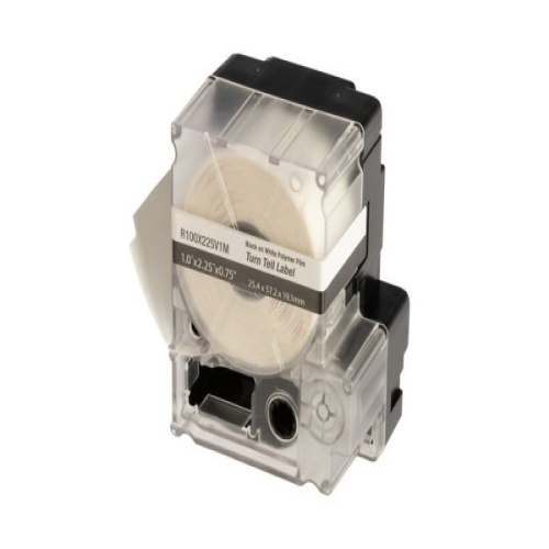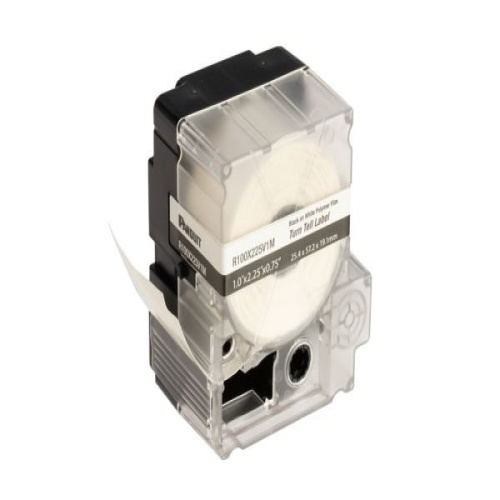 The R100X225V1M Self-Laminating Turn-Tell Label Cassette includes both label material and ribbon for easy changeover. The label design allows rotation for visibility from any angle - reposition on the wire/cable to align legends and improve aesthetics. Can be easily installed on existing terminated wires and assemblies without disconnecting the wires/cables. For use with the MP300 printer. Vinyl. 1" x 2.25" (25.4 mm x 57.2 mm). Color Clear/White. 75 labels per cassette. 1 cassette per package.