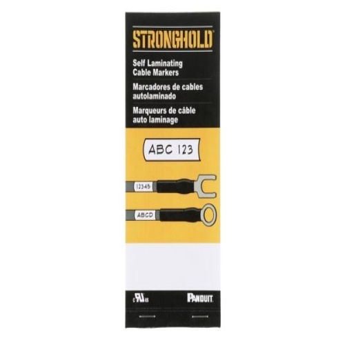 StrongHold PSCB-13Y Self-Laminating Cable Markers have a .75” (19.0mm) blank ink receptive area to allow for handwritten legends and a clear section that wraps around to laminate and protect the printed legend. Designed to withstand various outdoor environments. The markers are white in color and come 40 markers per book.