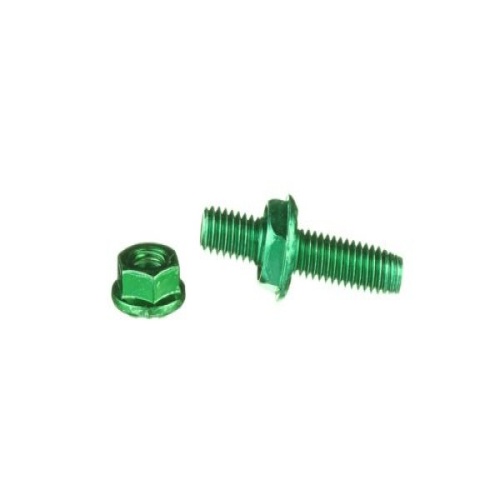 The TRBSK Bonding Stud Kit incorporates piercing serrations to create a bond point between the rack or cabinet and painted patch panels, mounted equipment, servers, busbars, and jumpers. The thread-forming provides a bond to the rack or cabinet by removing paint from holes and minimizing metal shavings and the green color-coding to indicate bonding application.