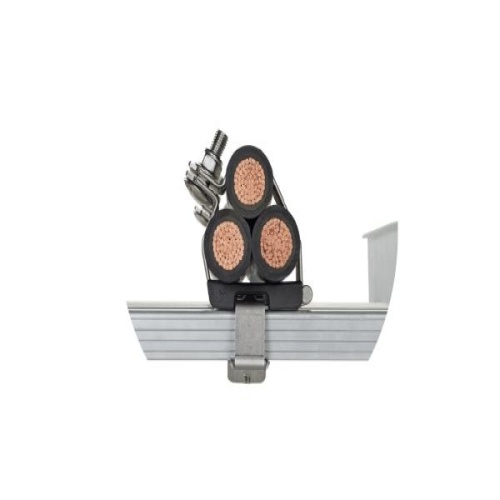 The CCSSTR4652-X Stainless Steel Trefoil Cable Cleat offers protection against extreme environments and high short circuit current faults. The cable cleat is certified to IEC 61914:2015, tested up to 172kA peak fault current and retains cables in the event of a short circuit fault. Compatible with cable diameter of 46-52mm and installs using a separately sold mounting bracket or direct to the cable tray rung via fixing hole and user-supplied M8 bolt. Features 316L SS and removable spacer.