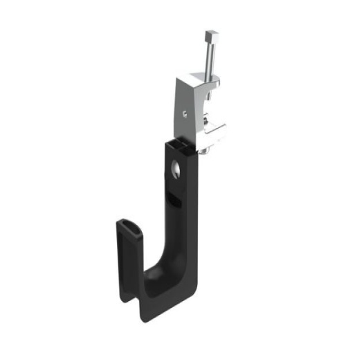 StrongHold JP131SBC87RB-L20 J-Pro™ J hook with Screw-On Beam Clamps have a patented design, featuring complete horizontal and vertical 1" bend radius control as well as 360 degree rotation. This feature prevents pinch points and degradation of cable performance. They are suitable for use in air handling spaces and are UL listed. For use with flanges up to 3/4" (19.1mm) thick and 1.31” (33.3mm) max bundle capacity. Made of Nylon 6.6, are black in color and come in packages of 50.