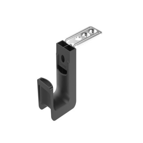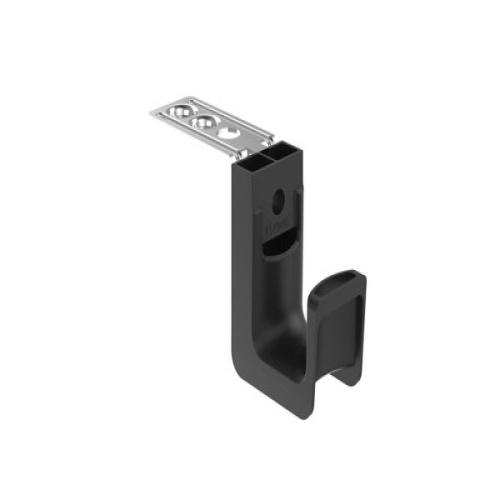StrongHold JP75CMB-L20 J-Hook with Ceiling Mount Bracket has a patented design, featuring complete horizontal and vertical 1” bend radius control, which prevents pinch points and degradation of cable performance. They are suitable for use in air handling spaces and are UL listed. Has one 3/16” (M5), ¼” (M6), and 3/8” (M10) mounting hole, 0.75” (19.0mm) max. Made of Nylon 6.6, are black in color, and come in packages of 50.