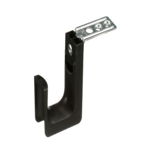 StrongHold JP2CMB-L20 J-Hook with Ceiling Mount Bracket has a patented design, featuring complete horizontal and vertical 1” bend radius control, which prevents pinch points and degradation of cable performance. They are suitable for use in air handling spaces and are UL listed. Has one 3/16” (M5), ¼” (M6), and 3/8” (M10) mounting hole, 1.31” (33.3mm) max. Made of Nylon 6.6, are black in color, and come in packages of 50.