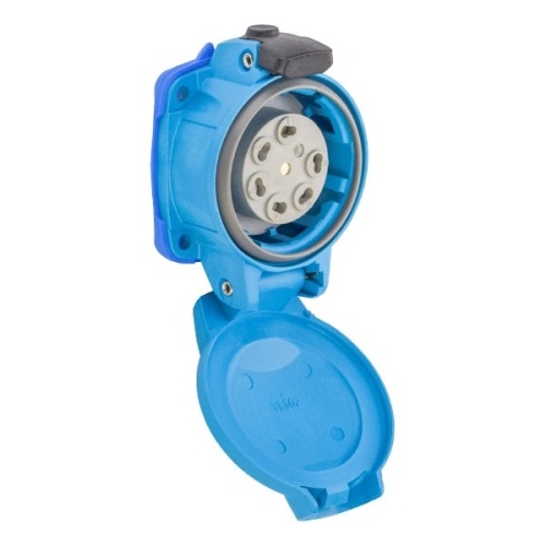 Meltric 03-P4051-NC PN7c RECEPTACLE POLY BLUE SIZE 1 IP 66/67 5P+G 15 A 480 VAC 60 Hz SELF-RETURNING LID