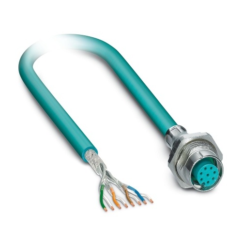Phoenix Contact VS-M12FSBP-OE-94C-LI/2,0 - Device connector rear mounting, degree of protection: IP65/IP67, cable length: 2 m, number of positions: 8, connection method: Cable connection, Ethernet, Alternative product in accordance with RoHS II without Exemption 6c (Pb < 0.1 %) item no.: 1260718 - 1412820
