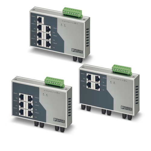 Phoenix Contact 2832603 An Ethernet switch with a total of seven ports, including four standard RJ-45 connectors for high-speed connections and three fiber optic (FO) ports for faster, longer-distance connections, supports both 10 Mbps and 100 Mbps data transmission speeds in ST-D format. The device features automatic speed detection for RJ-45 ports, allowing it to seamlessly switch between 10 Mbps and 100 Mbps modes, as well as an auto-crossing function that enables efficient signal transmission over the fiber optic ports.