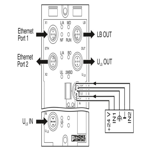 Phoenix Contact 2736916 The Ethernet bus coupler allows up to 16 devices to connect on a local bus, while also offering various features including support for 10 Mbps and 100 Mbps speeds, auto negotiation and auto crossover capabilities, digital inputs, diagnostic tools, protection against short-circuit and overload issues, as well as fast M12 connection technology.