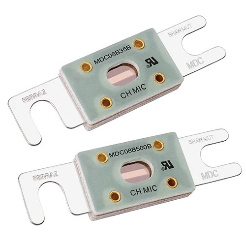 Mersen’s MDC battery module fuse is designed and tested for the protection of battery modules. The MDC08B series provides back-up protection to the battery module during shipping, transportation, and handling of the module.