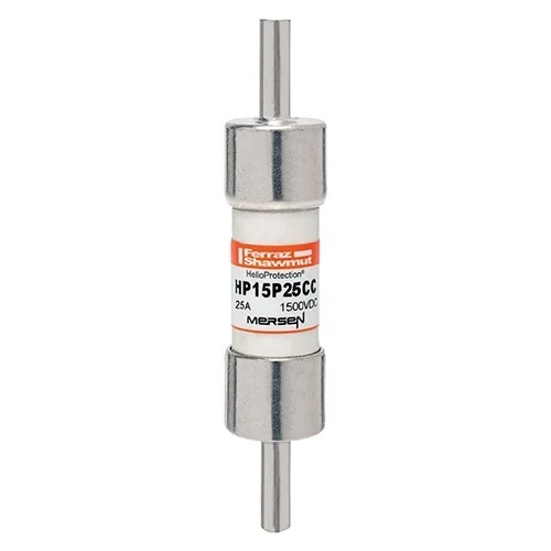 Mersen’s range of 1500VDC photovoltaic (PV) fuse series is designed specifically to meet higher amperage demands of today’s PV circuits. Mersen’s 20x65mm form factor is designed to handle the harsh cyclical loads and thermal conditions of our customers’ highest amperage applications. These 1500VDC rated fuses are designed for low minimum breaking capacity capabilities of 1.35 times the fuse rated current value, which allows for safe circuit interruption under typical low fault current conditions. In addition to the standard ferrule terminal, fuses are also available with Crimp Cap terminals for in-line fuse applications. The unique wire crimp terminal (CC option) permits solderless wire-to-fuse connection for overmold encapsulation of fuse and wiring. Protect your off-grid or grid tied PV system from unexpected line faults using Mersen’s HelioProtection® fuse line.