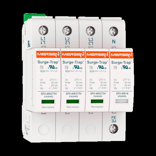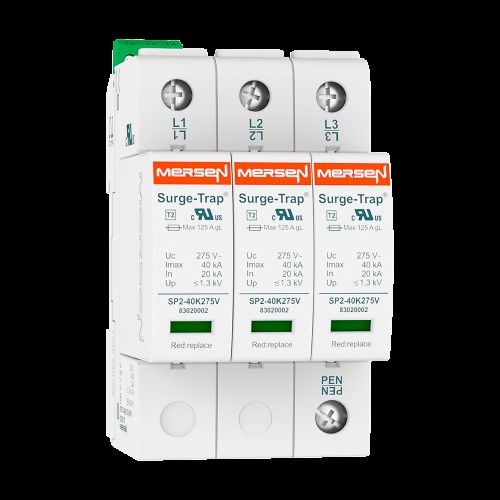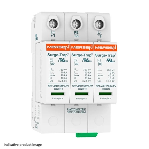 Mersen 83020141 Surge Protection Device Type 2, 40kA Imax (8/20), Y PV, 1000Vdc, Photovoltaic, 3 Poles, Pluggable, 3 Modules, Remote indication