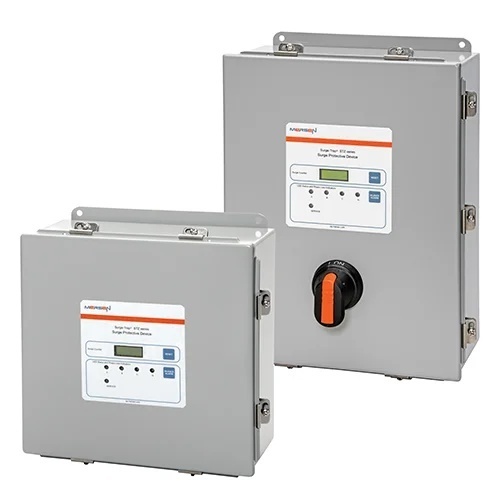 Standard features include LED phase loss indication, EMI/RFI filter, surge counter, dry contacts and audible alarm with silence button