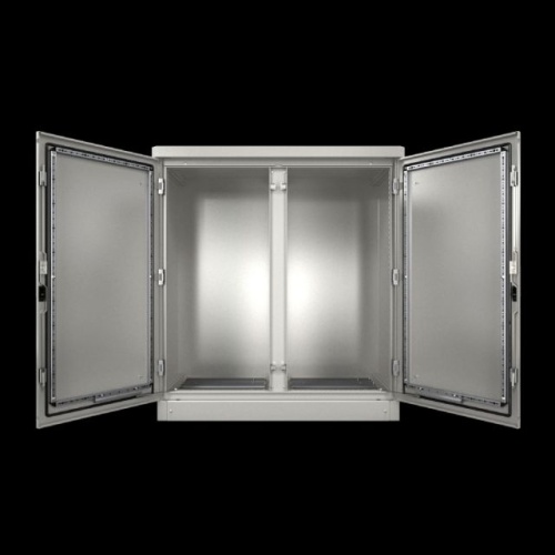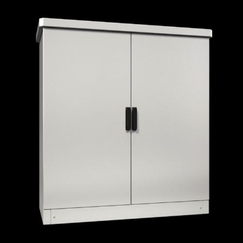 Single-walled housing systems, one-door and two-door. Ready for use for all applications with passive interior equipment or low power dissipation in outdoor areas. Roof concept with all-round louvred grilles