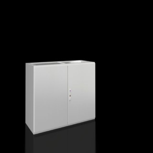 Supply Includes: Enclosure open at top Door or double-door at front, with 3-point locking system Mounting plate Gland plates Lock: 3 mm double-bit