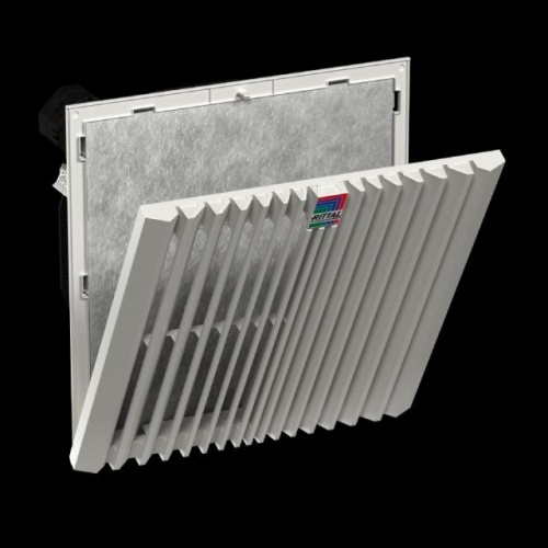 Benefits: Maximum air throughput via pleated filter included in the delivered state Easy filter changes, thanks to a new opening mechanism on the louvred grille Faster installation on the enclosure with optimised detent hooks Diagonal fan technology achieves more even and constant ventilation of the enclosure, thanks to improved pressure stability Tool-free assembly