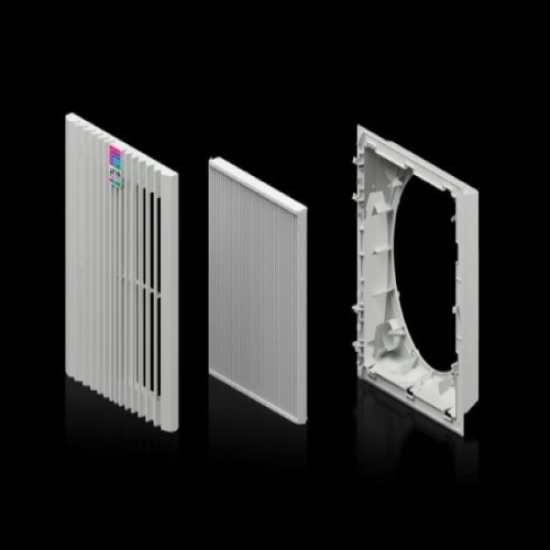 Benefits: Maximum air throughput via pleated filter included in the delivered state Easy filter changes, thanks to a new opening mechanism on the louvred grille Faster installation on the enclosure with optimised detent hooks Tool-free assembly