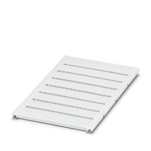 Phoenix Contact 0824573 A sheet of markers can be ordered specifically for terminal blocks with a snap-in mounting system. The markers come in white sheets labeled according to the customer's specifications and are designed for use with terminal blocks that have a width of 4.2mm. Each sheet contains 120 individual labels, allowing users to display specific text or information within a 10.5mm tall x 3.6mm wide text field area.