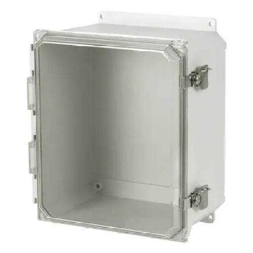 Non-Metallic Electrical Enclosure with Snap Latches, Fiberglass, 12 " (H) x 10 " (W) x 6 " (D), Padlocking Latch Closure, Viewing Window, OM-AMU Series, Each