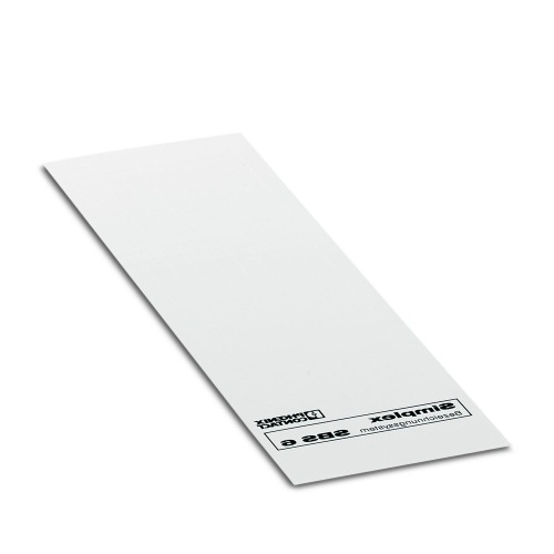 Phoenix Contact 1007222 A card with a white background can be used as an unlabeled marker and may be customized by adding text using a marker pen, featuring a latching mechanism that snaps into a flat groove in the terminal block, accommodating cards up to 6mm wide, allowing for individual labels of 250 units, and having a text field measuring 6mm in height and 6.1mm in width.