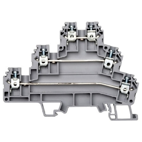 Feed Through Terminal Block, Multi-level, 32 A, 300 Vac, 26 AWG to 10 AWG, 6 mm (0.236 "), Gray, 9 mm (0.35 "), One-in, 3-out Multi-Connection Terminal Block, PIK Series, Each