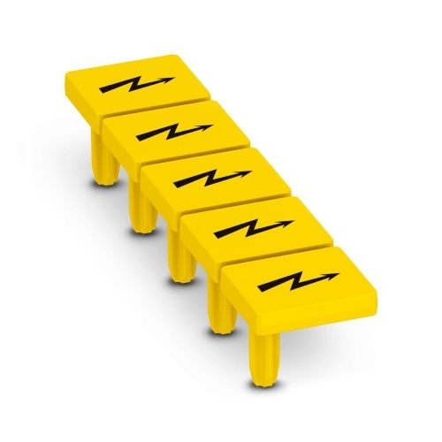 Phoenix Contact 1029029 The warning label has a distinctive yellow and black design featuring a lightning flash symbol, indicating that it is for use with a terminal block that accommodates plugs with a width of 8.2 millimeters.