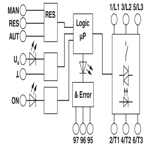 Phoenix Contact 2900542 A hybrid motor starter is designed to start 3-phase AC motors with a maximum voltage of 500V AC and an output current of up to 0.6A, utilizing a 24V DC control voltage for operation, featuring an adjustable overload shutdown mechanism as well as a screw-connection design for user-friendly installation.