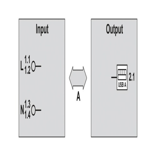 Phoenix Contact 1335699 The STEP POWER power supply unit features a push-in connection, allowing for easy installation on either DIN rail or direct mounting. It also boasts an integrated cable groove with strain relief, making it convenient to manage cables. The device has a primary switch and accepts 1-phase input, delivering a regulated output of 5V DC up to 3A, plus a USB-A port that can handle up to 15W of power.