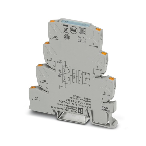 Phoenix Contact 1069556 A PLC-Interface can be used as an electronic reversing load relay. It features a PLC-BPT/21 basic terminal block with push-in connections and an integrated circuit that enables the control of DC motors. The device also includes an LED display for monitoring and a protective circuit to ensure safe operation. Its output is 10-30 V DC at a current capacity of 2 A.