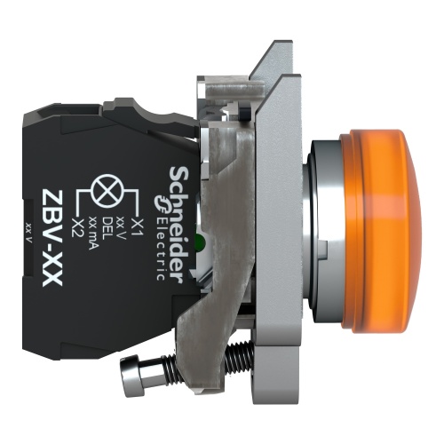 Schneider Electric XB4FW35M5 Illuminated push button flush mounted, metal, orange, 30 mm, integral LED, 230V AC 1 NO + 1 NC