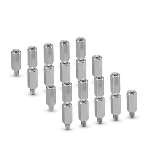 Phoenix Contact 1494984 A spacer bolt with a specified dimension is used to secure the Printed Circuit Board (PCB) to the heatsink, featuring an AF5 wrench size and measuring 10 mm in length, made from steel and coated with a galvanized finish.