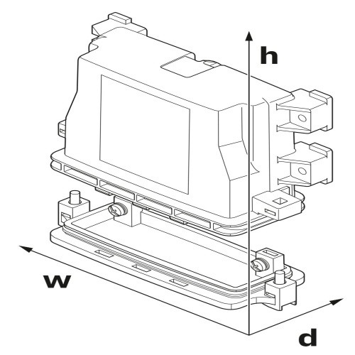 Phoenix Contact 1143766 The ECS family faceplate is designed for integration with a single D-SUB 25 connector and features screw locking, providing protection against dust (IP66/IP67) and water (IP68/IP69) when paired with the ECS housing. The product's dimensions include a black color (9005), measured at 163 mm in width, 30 mm in height, and 62 mm in depth.