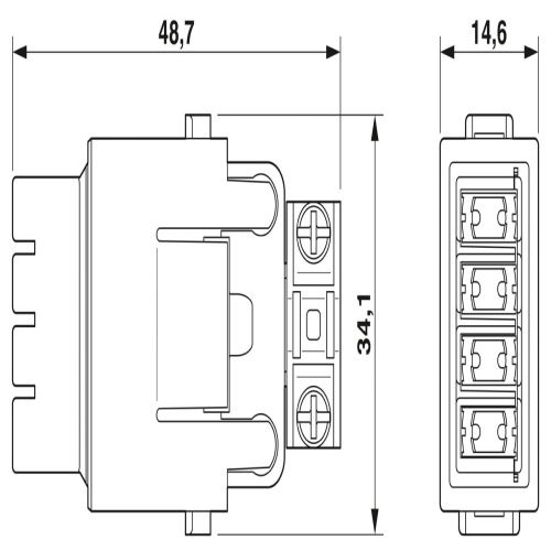 Phoenix Contact 1353610 The insert module has an 8-position socket that uses a crimp connection for power, requiring 48 volts and up to 5 amps with a cross-sectional area of 0.08-0.5 mm2. It is designed for data transmission with shielded cables connecting to the module frame without the need for crimp contacts.