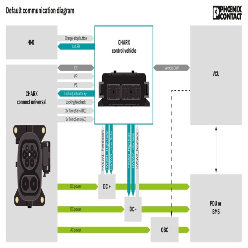 Phoenix Contact 1722154 A CHARX control vehicle is a vehicle charging controller that can be customized and housed in various locations. It enables the autonomous control of the DC charging process for electric vehicles with CCS charging inlets, conforming to DIN SPEC 70121 and ISO standards. The operating mode of this system is Stand-Alone, indicating it can operate independently without external supervision.