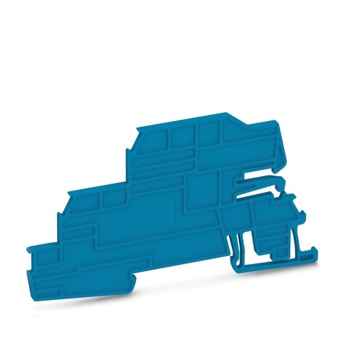 Phoenix Contact 1037092 A support bracket is designed to hold busbars in place at regular intervals, spaced every 20 cm, with a pitch of 200 mm and a depth of 51.2 mm, having a width of 2.2 mm, a height of 97.4 mm, accommodating a single position, and finished in blue color.