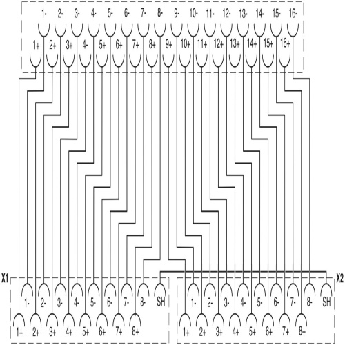 Splitter cable for connecting two 8-channel VIP base modules to a Honeywell® 16-channel IOTA board assembly