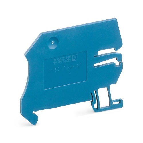 Phoenix Contact 3245082 A support bracket is installed on a busbar at intervals of 20 cm and features dimensions of 46.9 mm in depth, 2.2 mm in width, and 58.4 mm in height, with one position available for use, typically colored blue.