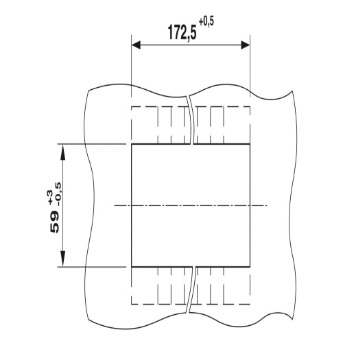 Phoenix Contact 3969956 The test terminal strip features 34 connections, which are arranged in 17 positions on a single board. The connections utilize ring cable lugs with a rated cross-sectional area of 6mm2 and are mounted on the panel, with a gray finish.