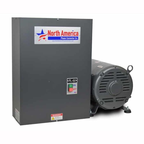 powering sensitive modern CNC and traditional three-phase equipment. North America’s Pro-Line rotary phase converters for sale go further with efficient removable back plates, built-in motor starter, digital start protection, soft start, and full three-line break