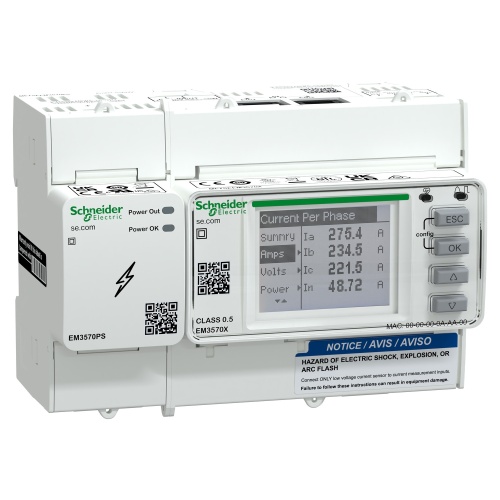 DIN rail meter, PowerLogic EM3570, Ethernet, LVDC, LVCT input bundled with external Power Supply