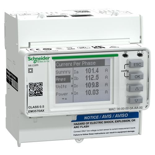 Schneider Electric METSEEM3570AX DIN rail meter, PowerLogic EM3570, Ethernet, LVDC, Rogowski