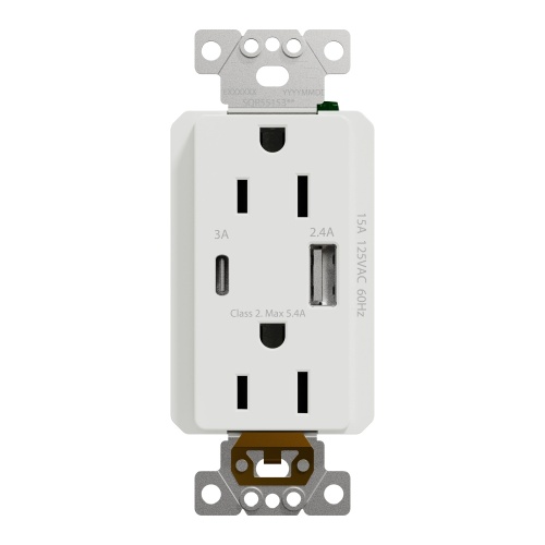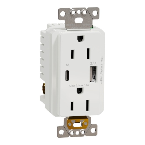 USB charger + socket-outlet, X Series, 15A socket, 5.4A USB A/C, duplex, tamper resistant, white, matte finish