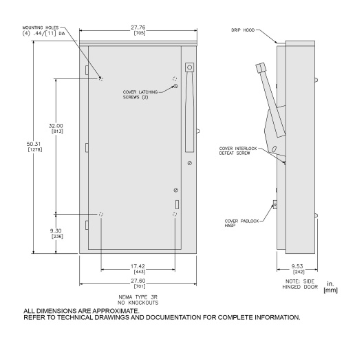 Safety switch, heavy duty, fusible, 600A, 600VAC/VDC, 3 poles, 500HP, NEMA 3R, neutral