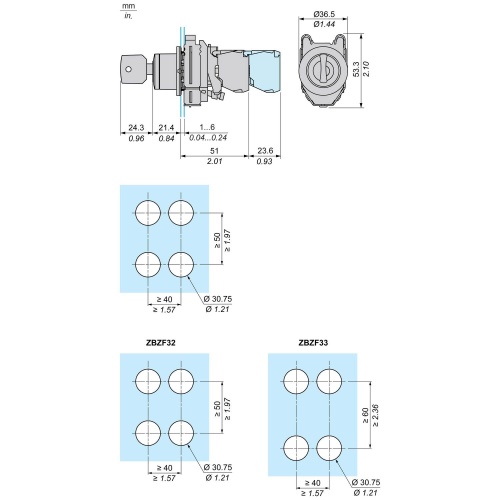 Schneider ZB4FG4 Stay put Head for key selector switch 2 positions 90° Chromium plated metal Ronis 455 In any position Round Black key switch 1 Harmony XB4 Built-in-flush ZB4F 1.20 in (30.5 mm 0.29 lb(US (0.133 kg 1015.26 psi (7000000 Pa 131 °F (55 °C 0.1 m 1000000 cycles Basic e