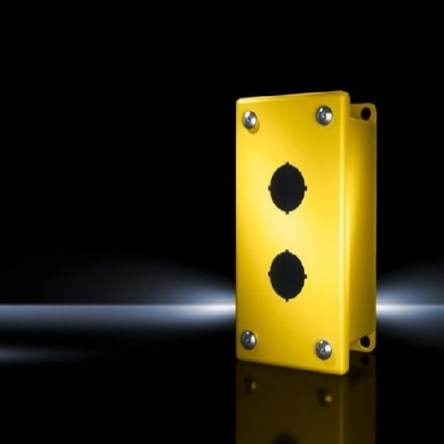 PB pushbutton box, 2-hole, 22.5 mm hole diameter, 5.12" H x 2.76" W x 3.5" D, Carbon Steel, Yellow