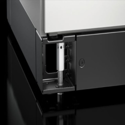 For retrospective leveling on uneven floors at the installation site up to a maximum of 15 mm. Installed through the base/plinth corner piece.