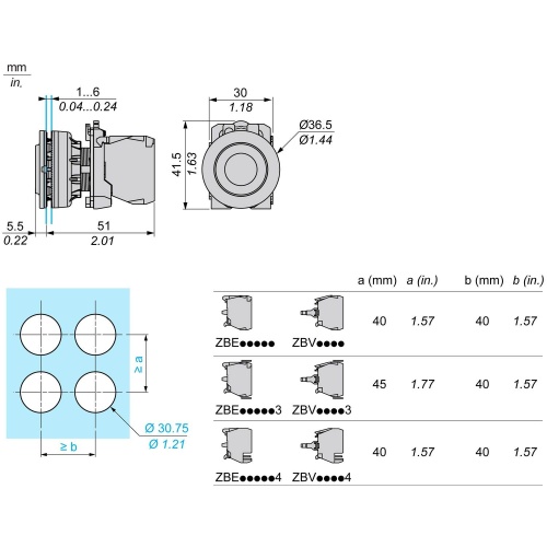 Schneider ZB5FL3 spring return Head for non-illuminated push-button ZBYF-, ZBZF32, ZBZF33, ZB5AZ Dark gray plastic Round Green projecting, unmarked 1 Harmony XB5 Built-in-flush ZB5 1.20 in (30.5 mm 0.07 lb(US (0.031 kg 1015.26 psi (7000000 Pa 131 °F (55 °C 0.1 m 10000000 cycles B
