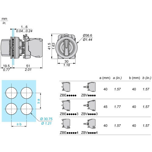 It is easily installed and replaced on compatible complete selector switch units and contact blocks via snap-fit assembly