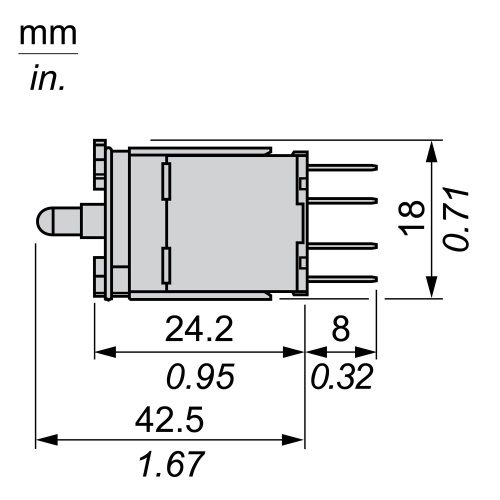 Schneider ZB6ZB55B 12-24 V AC/DC Complete body for illuminated push-button 1 NO + 1 NC Faston connector 2.8 x 0.5 mm LED Yellow Silver alloy (Ag/Ni Harmony 16 mm XB6/ZB6 Plastic Push Buttons Electrical functions Body/contact assemblies