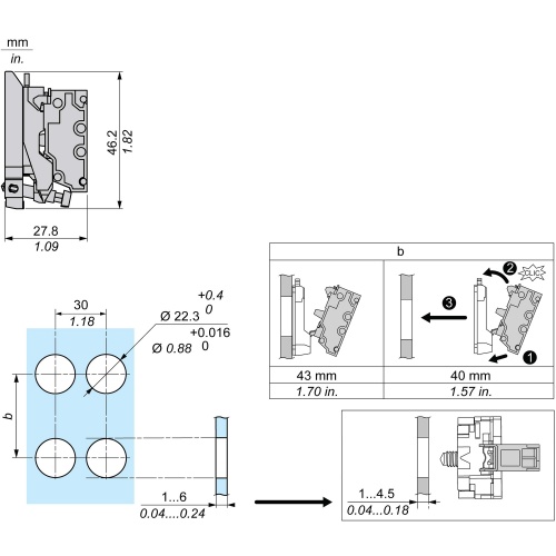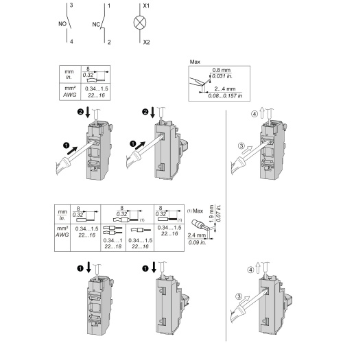 single contact block with body/fixing collar 2NO spring clamp terminal