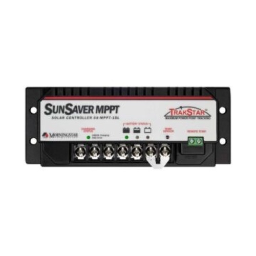 Morningstar SS-MPPT-15L Charge Controller 15 AMP 12/24V Open Circuit Variable Voltage Controller. MPPT Advanced power point tracking features smat tracking which maximizes the energy harvest from the solar source with an algorithm and provides load control to not overcharge the batteries. Max 200w-12v or 400w-24v input. Fully adjustable and programmable. Provides power boost, maximizes energy, longer battery life with load control. Optional remote meter adn battery temp. sensor sold separatly. 5 year warranty.