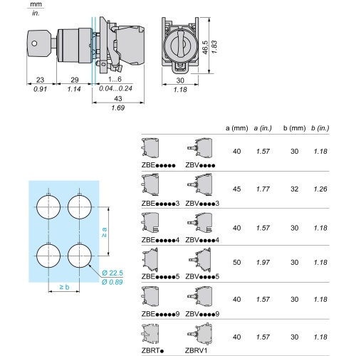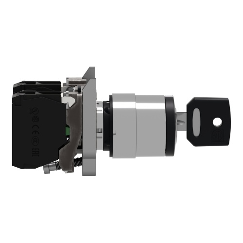 Schneider XB4BG03 stay put Selector switch 2 NO 3 positions +/- 45° Chromium plated metal Ronis 455 In any position Round Black key switch Standard contacts 1 Harmony XB4 Standard 10 A EN/IEC 60947-5-1 1000000 cycles, AC-15, 2 A 230 V 3600 cyc/h 0.5 EN 60947-5-1 appendix C, 10000